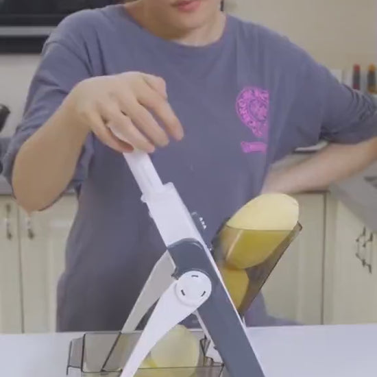 Optimiza tu tiempo en la cocina con este combo práctico y funcional, ideal para picar papas, verduras, frutas, carnes y más en segundos, sin esfuerzo y sin electricidad.